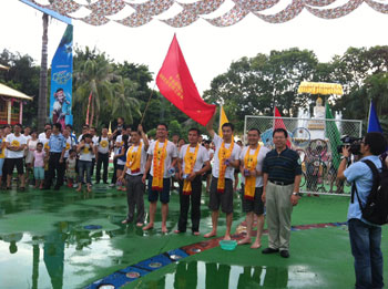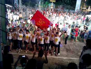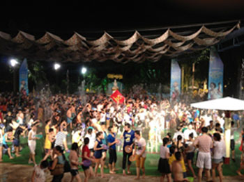 我們公司帥氣男隊(duì)熱情地參加了LED協(xié)會(huì)組織潑水節(jié)比賽并且得到冠軍。我們的美麗女員工不遑多讓也同大家一起參加了一年一度的潑水狂歡盛典。每張年輕的臉上寫意著激情、歡樂、時(shí)尚、動(dòng)感。在這個(gè)熱情似火的夏日,愛shui就潑shui! 在一片水花四射中,歐普特的紅旗多么地張揚(yáng),歐普特年輕人人是那么地活潑可愛。余興節(jié)目是觀看民族村的高水平文藝晚會(huì)。一段悠揚(yáng)的葫蘆絲帶出那茂密竹林深處的歌聲,水一樣的傣家姑娘身著花色筒裙,頂著水果的姑娘、挑著水罐的女孩、撐著花傘的小仆哨和舉著羅傘的和尚、還有那在清清溪水旁起舞的孔雀 。。。