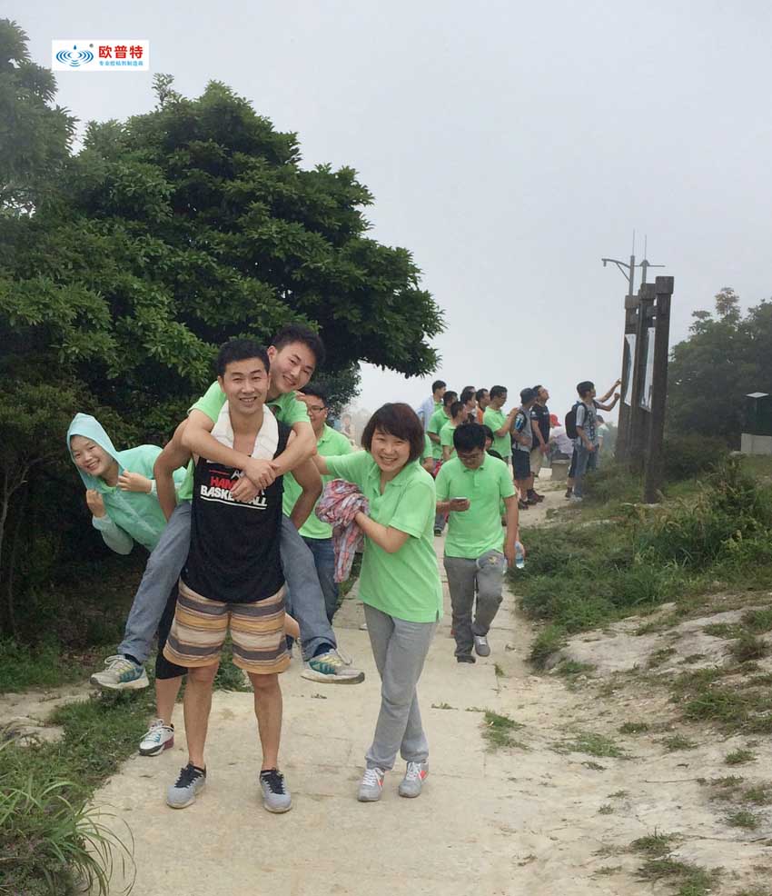 當(dāng)然每位小伙伴們體質(zhì)不一樣,有人一路狂奔,也有人慢慢落后,我們商務(wù)美女小希本來(lái)三分之一路程已然到達(dá)體能局限,準(zhǔn)備放棄,此時(shí)我們老大蔣帥伸出了他有力的大手,并不斷的鼓勵(lì),誘導(dǎo)小伙伴設(shè)立自己小目標(biāo),然后到達(dá)終點(diǎn)。這正是我們歐普特人不放棄,不拋棄每一位家人。使我印象最深刻的是:當(dāng)最后一位小伙伴沖向山頂,一起和團(tuán)隊(duì)擁抱匯合的時(shí)候,我們留下了激動(dòng)喜悅淚水。人一定要有自己設(shè)定的目標(biāo),并把他一一分解成每一個(gè)小目標(biāo),逐一完成,建立自己的信心,直至完成終極目標(biāo)!